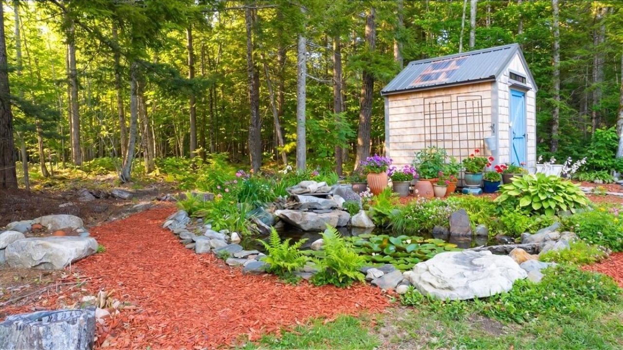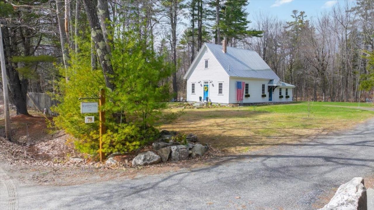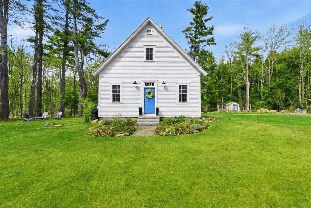 Wonderfully restored historic Washington Schoolhouse! Built in 1861 and in use as a school house until 1953, this unique property has been thoughtfully transformed into a charming 3 bedroom, 2 bath home that beautifully blends character with modern comfort. The open-concept living, and dining area features soaring 11 foot ceilings, original wood floors with authentic wear marks from generations of students, and a cozy propane stove set on the original metal hearth - offering both warmth and timeless ambiance. The galley-style kitchen is a delight for any home chef, showcasing antique drawer pulls, a copper sink with period hardware, and stainless steel appliances, including a propane Bertazzoni Professional stove, dishwasher, and trash compactor. Ample cabinetry ensures plenty of storage and functionality. The main level offers two versatile rooms that can serve as bedrooms, a home office, or flex space to suit your needs. Fully updated full bath is a standout, featuring a luxurious soaking tub, antique marble counters, and a copper sink. Upstairs, the spacious primary suite provides a peaceful retreat, complete with ample closet space and an ensuite bath featuring a tiled walk-in shower. Set on a level and cleared .5 acre lot, the property is filled with natural sunlight and thoughtfully designed landscaping. Enjoy established perennials, a tranquil pond, and beautifully shaped apple trees. Two sheds provide excellent storage - one ideal for gardening tools and the other for seasonal items. Added bonus of being surrounded by Jamie's Pond Wildlife Preserve, a 860 acre playground for hiking, hunting, cross country skiing and more. Another bonus is that you can walk across the street and fish in Cobbossee Stream any time you like. A rare opportunity to own a piece of history, thoughtfully reimagined for modern living.